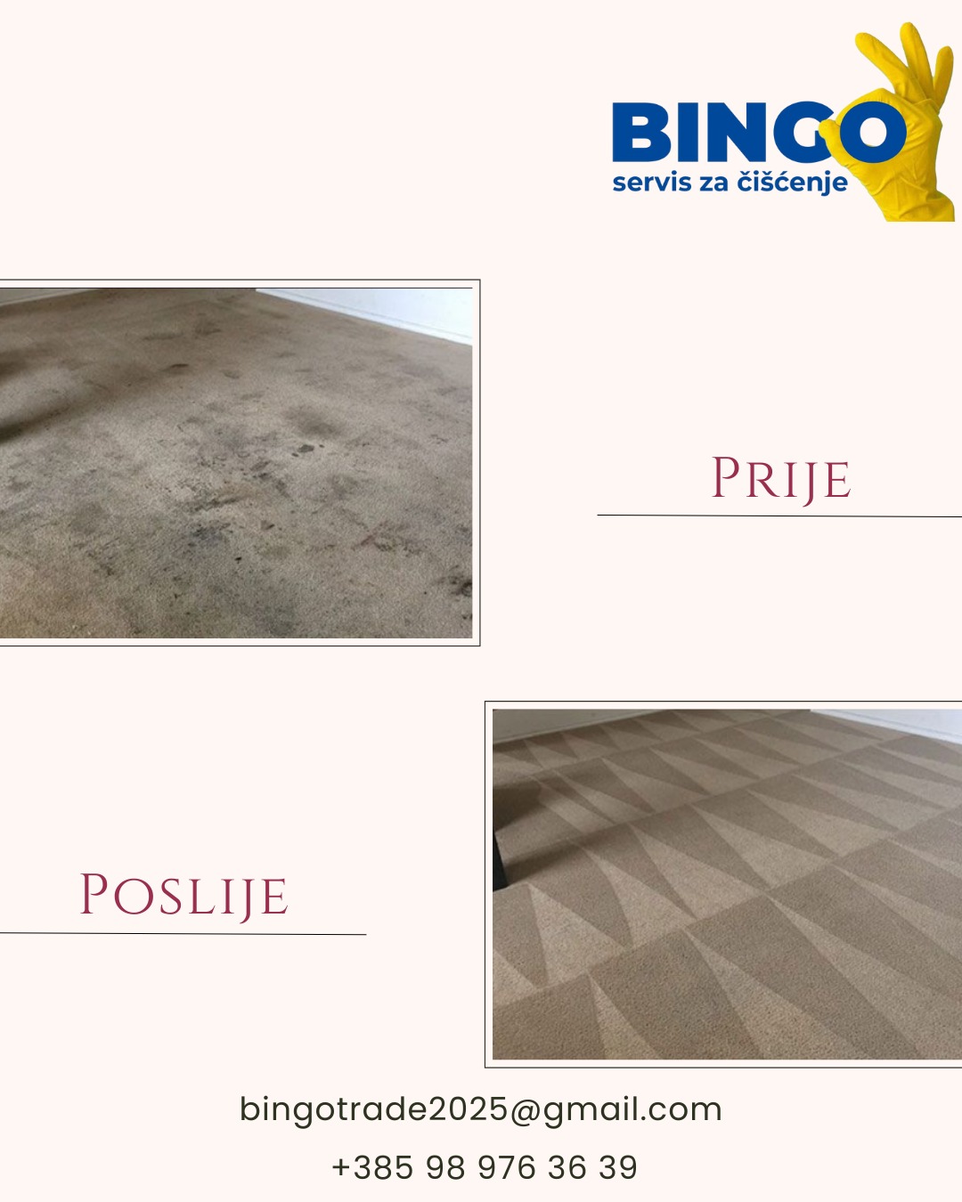Nudimo pouzdanu i temeljitu uslugu čišćenja prilagođenu vašim potrebama. Naš tim koristi kvalitetna sredstva i profesionalnu opremu kako bi svaki prostor bio besprijekorno čist i ugodan za boravak. Bez obzira radi li se o stambenom ili poslovnom prostoru, pristupamo svakom zadatku s pažnjom prema detaljima i visokim standardima kvalitete. Cilj nam je osigurati uredan i higijenski prostor u kojem se osjećate ugodno, dok vi svoje vrijeme možete posvetiti važnijim stvarima.
